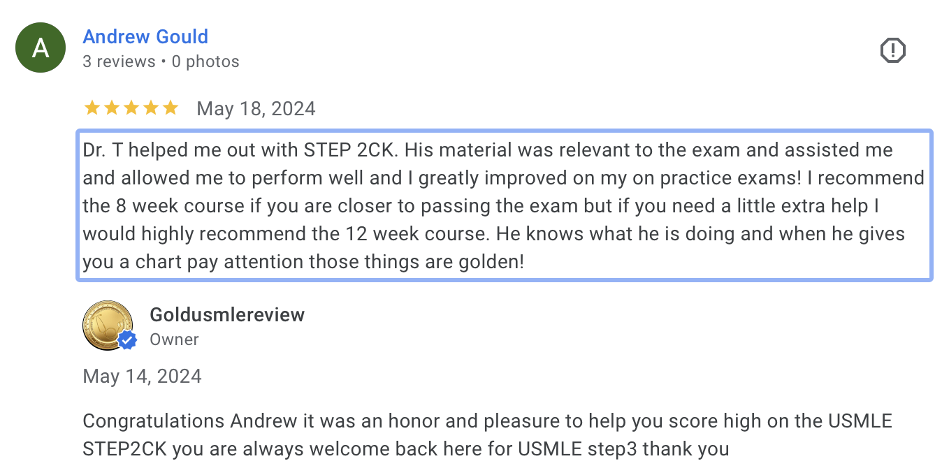 Join thousands of American med students who have trusted Gold USMLE Review to achieve their Step 2 CK goals. Our personalized approach, combined with our focus on high-yield content and efficient study strategies, ensures you are well-prepared to conquer the exam and embark on a rewarding medical journey.