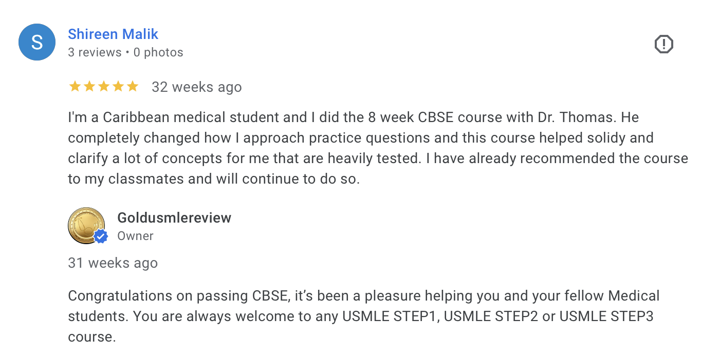 40 IN PERSON GOLDUSMLE CBSE/STEP1 SESSIONS